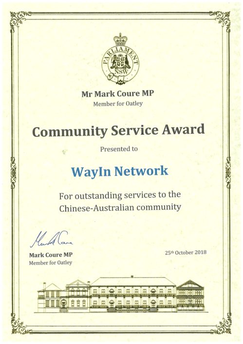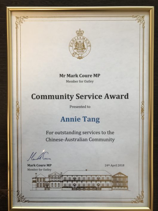 August 31, 2018/by adminCommunity Service Award for Outstanding Service to the Chinese-Australian Community