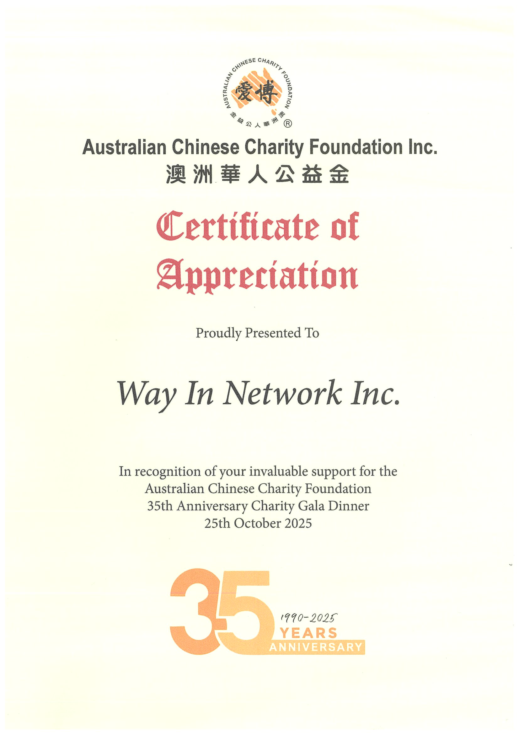 Australian Chinese Charity Foundation Inc. 35th Anniversary Charity Dinner