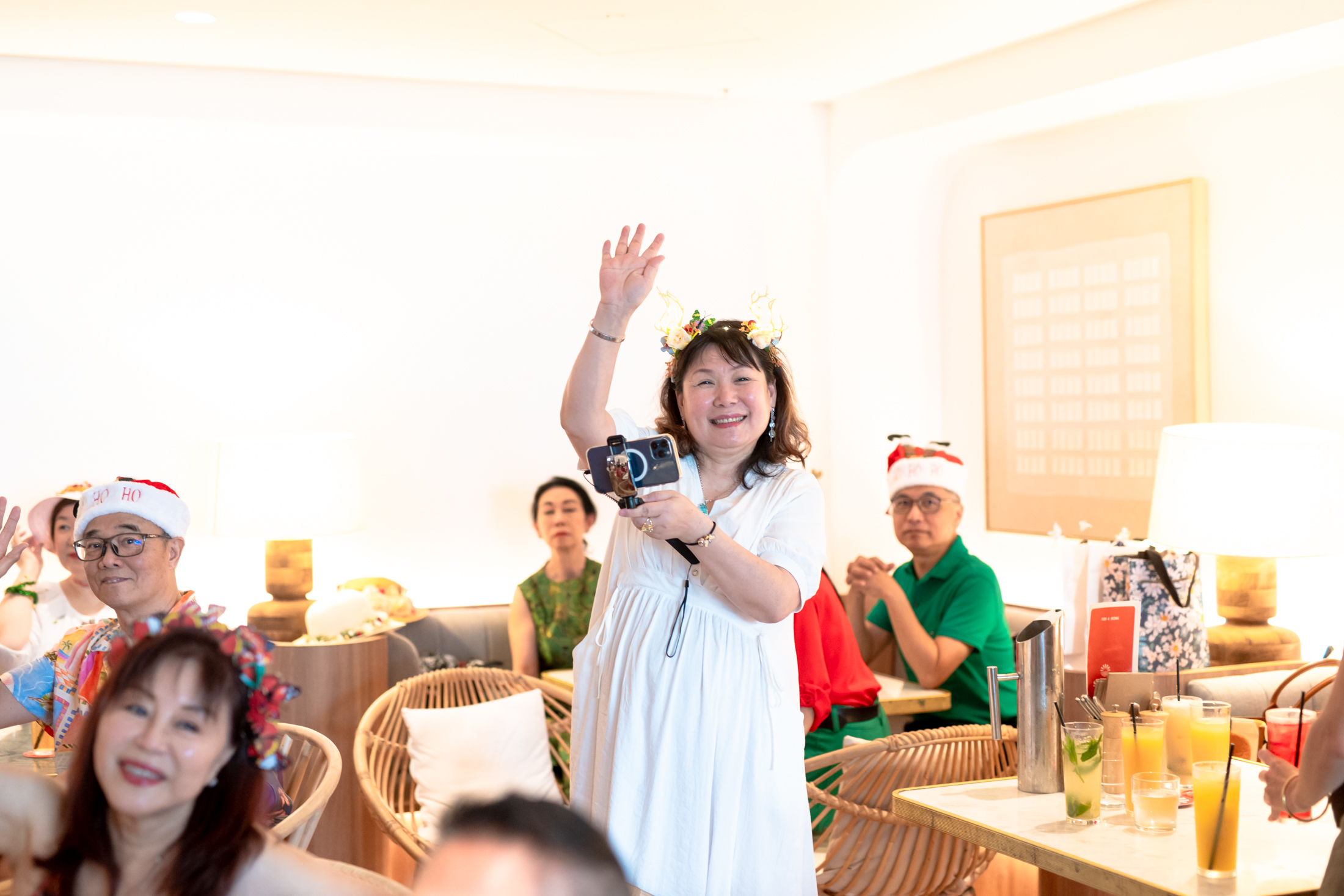 Jessie delivered her president’s speech at the beginning of the event, thanking the sisters for bringing their friends and families together to celebrate Christmas, as well as expressing appreciation to friends from other associations for attending. She wished everyone a joyful time, great food, and shared that a professional photographer had been arranged to capture beautiful Christmas memories for all.
