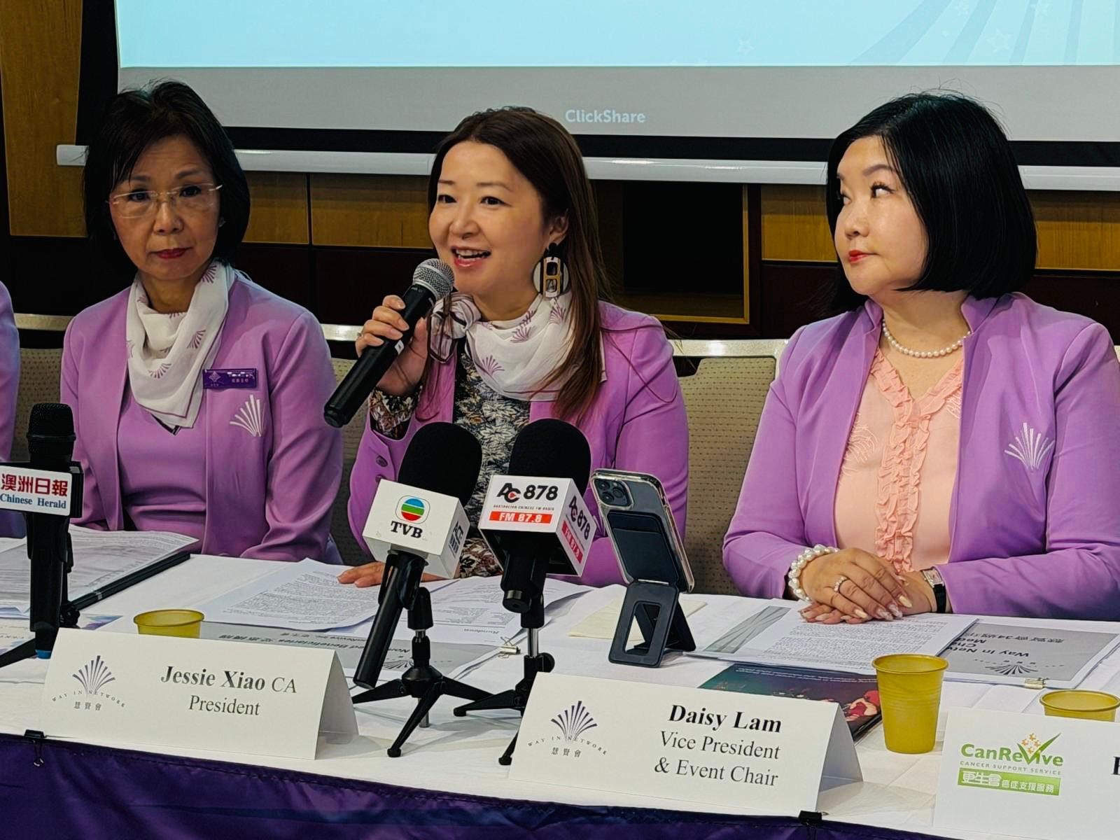 President Jessie Xiao also expressed her gratitude for the ongoing support and sponsorship from various sectors, and she extended special thanks to the Hong Kong Economic and Trade Office in Sydney (HKETO) for supporting and sponsoring the venue for this year’s press conference. Distinguished guests and community leaders in attendance included Cr Nancy Liu, Ms Jane Liu – Public Relations Officer of HKETO, and other representatives from the political, business, and community sectors. Their presence added prestige to the event and reflected the community’s shared support for charitable work and women’s development.