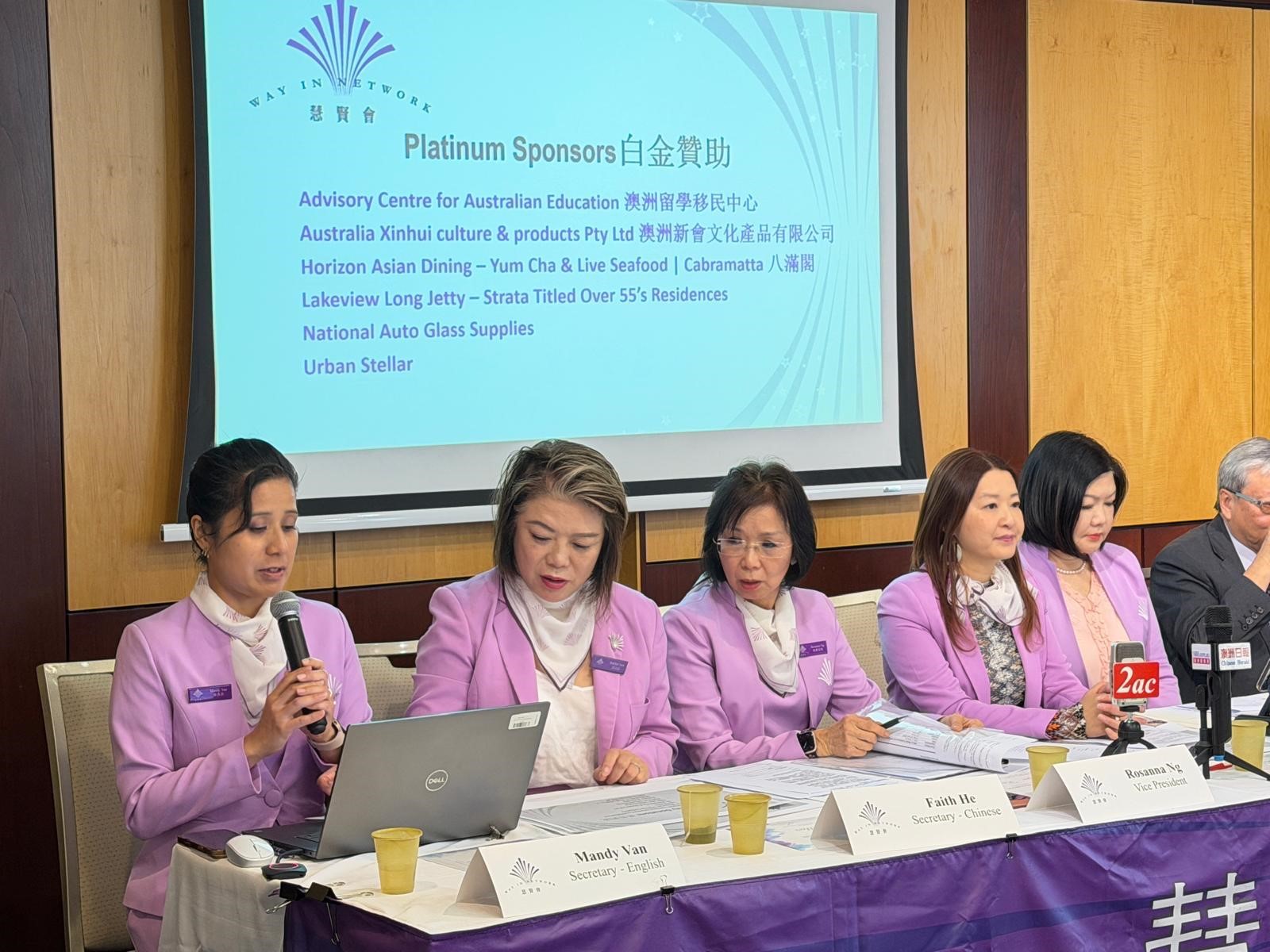 President Jessie Xiao, in her welcome address, stated that since its founding in 1992 by Honorary Life President Dr. Helen Sham Ho OAM, the Way In Network, under the leadership of successive presidents and committees, has been dedicated to supporting the development of women, serving the community, and actively promoting charitable causes. From its beginnings as a mutual support group for immigrant women, Way In Network has grown into today’s widely recognised non-profit organisation.”